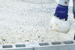 ●10㎝のブロックにフェンスの支柱(3.5㎝×2.5㎝)を立てる場合、パットカタマール1袋(20㎏)で約40本設置出来ます。