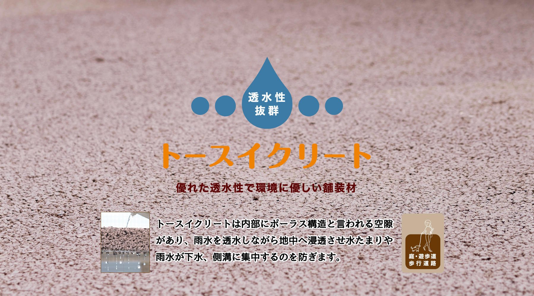 雨でも水溜りができません。またヒートアイランド現象(照り返し)を緩和します。
